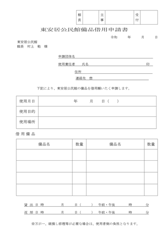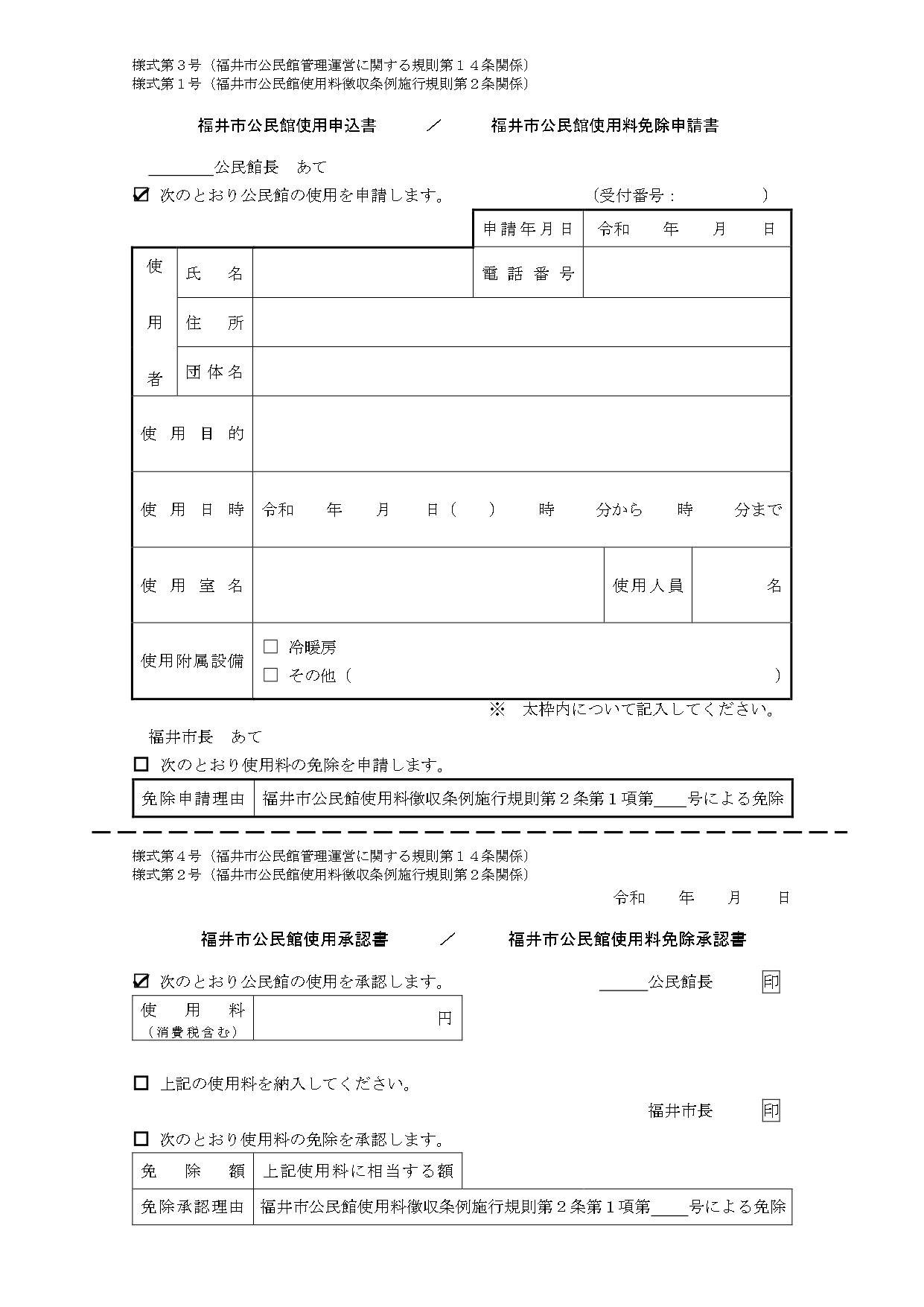 (電話、メールもしくは直接公民館にて) - 「福井市公民館使用申込書」に必要事項を記入し提出